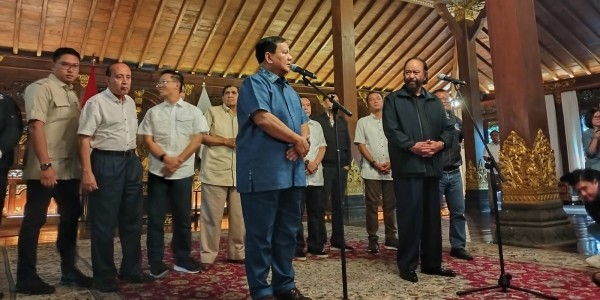 Telusur.co.id - Ketua Umum Partai Gerindra, Prabowo Subianto menyampaikan hasil pertemuannya dengan Ketum Partai NasDem, Surya Paloh