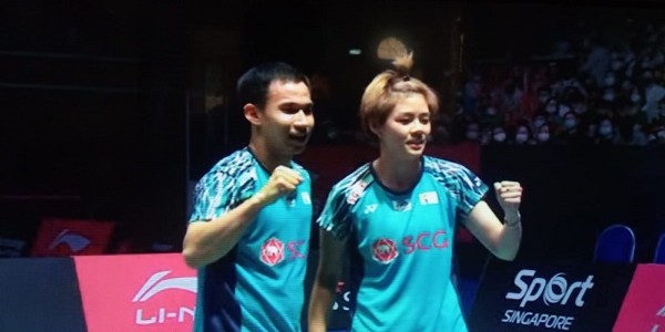 Telusur.co.id - Ganda campuran Thailand, Dechapol Puavaranukroh/Sapsiree Taerattanachai tak kuasa menahan kegembiraannya usai mengandaskan ganda campuran China,