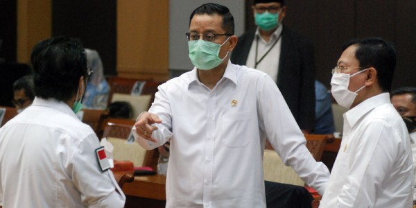 Telusur.co.id - Menteri Sosial Juliari P Batubara (tengah) bersama Menteri Kesehatan Terawan Agus Putranto (kanan) dan Ketua