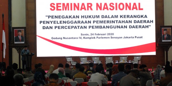 Telusur.co.id - Ketua DPD RI LaNyala Mahmud Mattalitti menyapaian sambutan pada Seminar Nasional dengan tema "