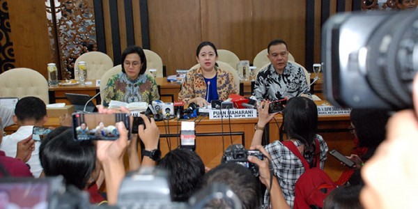 Telusur.co.id - Ketua DPR Puan Maharani didampingi Wakil Ketua DPR Sufmi Dasco Ahmad dan Mentri Keuangan