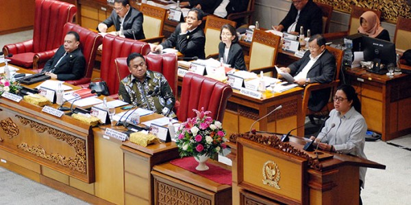 Telusur.co.id - Ketua DPR Puan Maharani (kanan) dan Mentri Keuangan Sri Mulyani (kiri) terlibat perbincangan serius