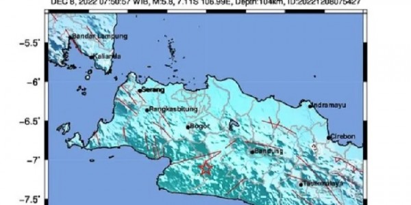 Telusur.co.id - Gempa dengan magnitudo (M) 5,8 mengguncang Kota Sukabumi. Jawa Barat, Kamis, sekitar pukul 07.50 WIB