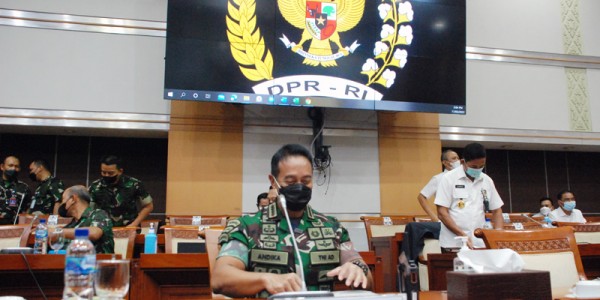 Telusur.co.id -Panglima TNI Jenderal TNI Andika Perkasa saat mengikuti rapat kerja dengan Komisi I DPR di