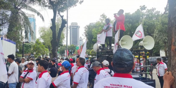 Telusur.co.id - Ratusan massa dari Pengurus Besar Komunitas Aktivis Muda Indonesia (PB KAMI) menggelar aksi di depan