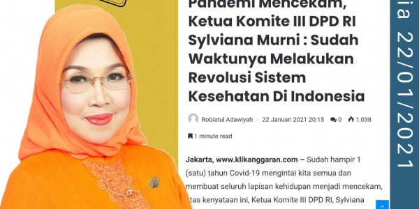 Telusur.co.id - Ketua Komite III DPD RI, Sylviana Murni, menilai bahwa sudah waktunya melakukan revolusi kesehatan