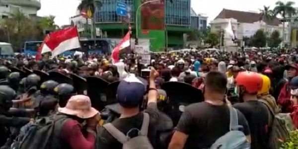 Telusur.co.id - Sejumlah mahasiswa di Kabupaten Bekasi mengecam keras tindakan represif oknum polisi dalam aksi unjuk