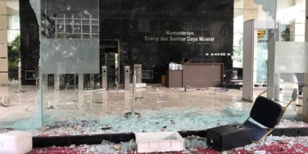 Telusur.co.id - Massa pendemo tolak Omnibus Law merangsek masuk dan merusak gedung Kementerian Energi dan Sumber