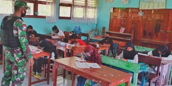 Telusur.co.id - Satgas Pamtas RI-PNG Yonif Mekanis Raider 413 Kostrad Pos Skamto melaksanakan perbantuan tenaga pendidik