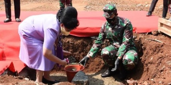 Telusur.co.id - Ketua Umum Dharma Pertiwi Ny. Nanny Hadi Tjahjanto meletakan batu pertama pembangunan Day Care dan Pendidikian