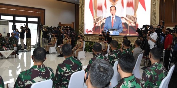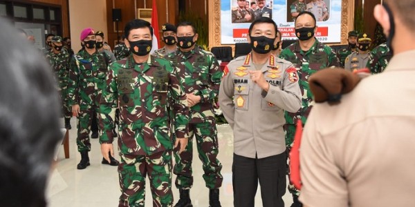 Telusur.co.id - Panglima TNI Marsekal TNI Hadi Tjahjanto dan Kapolri Jenderal Polisi Drs. Idham Azis memberikan