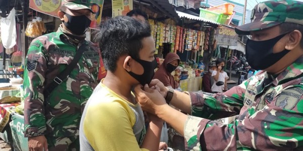 Telusur.co.id - Satu-persatu masyarakat di Kelurahan Sememi, Surabaya, mendapat bantuan masker dari pihak Koramil setempat. Uniknya