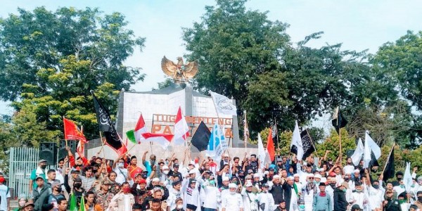 Telusur.co.id - Umat Islam yang tergabung Ormas Islam dan lintas komunitas serta Serikat Buruh di Subang,
