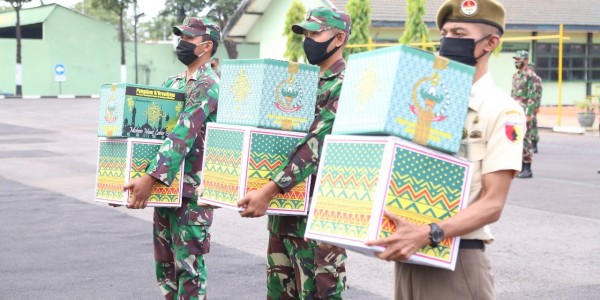 Telusur.co.id - Danrem 084/Bhaskara Jaya, Kolonel Inf Herman Hidayat Eko Atmojo menyerahkan beberapa bingkisan lebaran ke