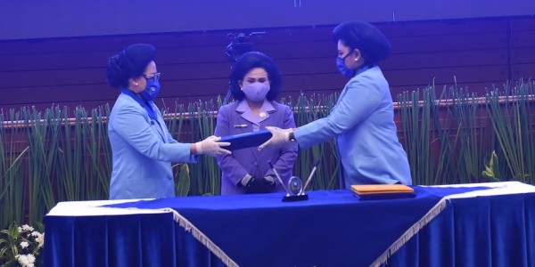 Telusur.co.id - Ketua Umum Dharma Pertiwi (DP) Nanny Hadi Tjahjanto memimpin serah terima jabatan Ketua Umum