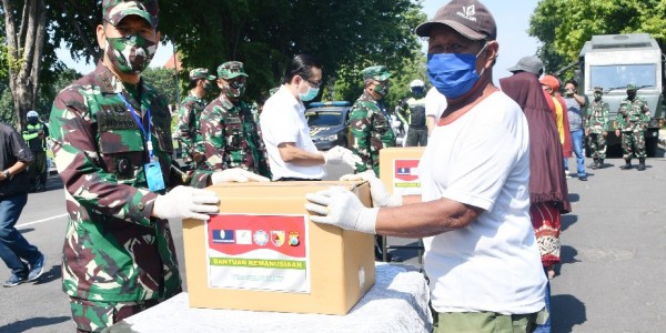 Telusur.co.id - Pangdam V/Brawijaya, Mayjen TNI Widodo Iryansyan mengapresiasi penyerahan ribuan paket sembako oleh beberapa perusahaan di