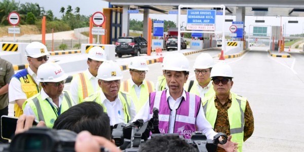 Telusur.co.id - Presiden Joko Widodo meninjau perkembangan pembangunan jalan tol ruas Pekanbaru-Dumai. Secara umum, pembangunan ruas