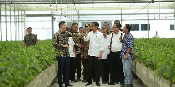 Telusur.co.id - Presiden Joko Widodo meninjau pusat pembibitan pohon untuk mendukung industri serat rayon, sebagai bahan baku
