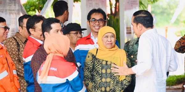 Telusur.co.id - Gubernur Jawa Timur Khofifah Indar Parawansa mendampingi Presiden RI Joko Widodo (Jokowi) dan Ibu Negara