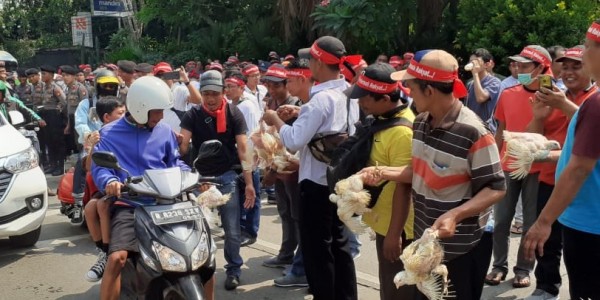 Telusur.co.id Aksi massa yang tergabung dalam Panguyuban Peternak Rakyat Indonesia (PPRI) melakukan aksi demo di depan