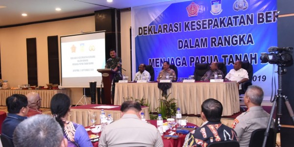 Telusur.co.id - Panglima TNI Marsekal TNI Hadi Tjahjanto, S.I.P. mengikuti deklarasi penandatanganan Papua damai di Kota