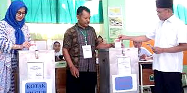 Telusur.co.id - Menteri Pendidikan dan Kebudayaan (Mendikbud) Muhadjir Effendy bersama istri, Suryan Widati, menggunakan hak pilih pada