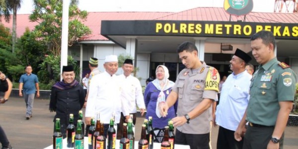 Telusur.co.id -Jajaran Pemerintah Kota Bekasi bersama Polrestro Bekasi Kota komitmen memberantas peredaran minuman keras (miras) ilegal