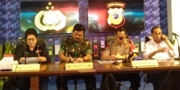 Telusur.co.id -Panglima TNI Marsekal TNI Hadi Tjahjanto, bersama Kapolri Jenderal Pol Tito Karnavian, Menteri Kesehatan Nila