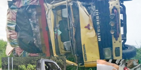 Telusur.co.id - Diduga tidak konsentrasi saat mengemudi, sebuah mobil truk cold diesel BK 8534N, membawa roti,