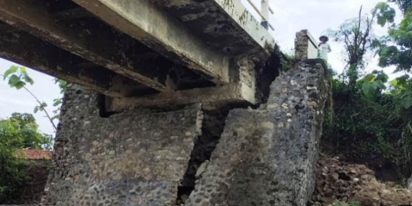 Telusur.co.id - Pondasi Jembatan Karangbokong, di Desa Kamal, Kecamatan Larangan, Kabupaten Brebes, Jawa Tengah, retak dan