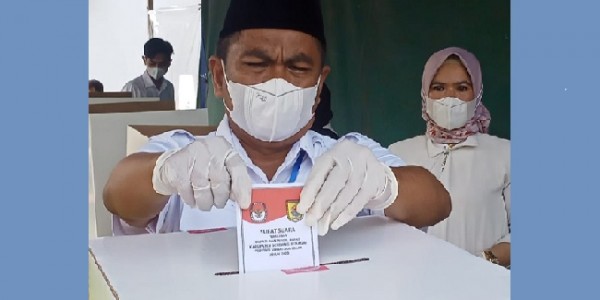 Telusur.co.id Calon Bupati Serdang Bedagai (Sergai) nomor urut 1, Darma Wijaya menggunakan hak pilihnya di TPS