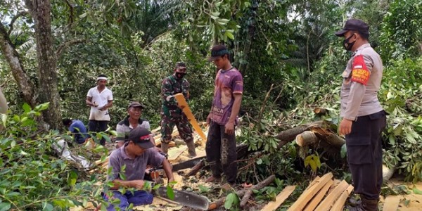 Telusur.co.id -Batuan Tugas Pengamanan Perbatasan (Satgas Pamtas) RI-Malaysia Yonif 642/Kapuas bantu warga masyarakat memperbaiki bendungan air