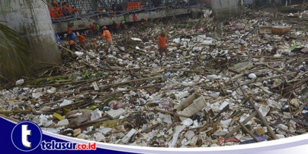 Telusur.co.id - Sampah yang berserakan sepanjang bantaran Kali Ciliwung, yang terkumpul sebagai imbas meluapnya sungai telah diangkut