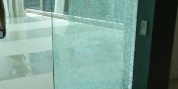 Telusur.co.id - Akibat gempa berkekuatan 6,4 SR yang terjadi di Lebak, Banten, sebuah pintu kaca di Skybridge, tepatnya
