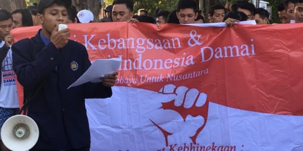 Telusur.co.id - Menyikapi dinamika sosial politik pasca Pemilu 2019, Aliansi Mahasiswa Surabaya gelar Orasi Kebangsaan dan Deklarasi