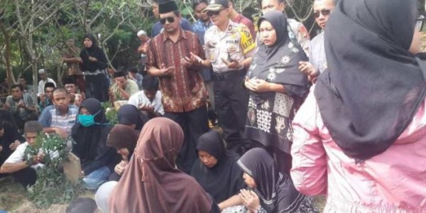 Telusur.co.id - Kepala Kepolisian Sektor Babelan Kompol Tata Irawan bersama anggota menghadiri prosesi pemakaman Ketua Kelompok Penyelenggara
