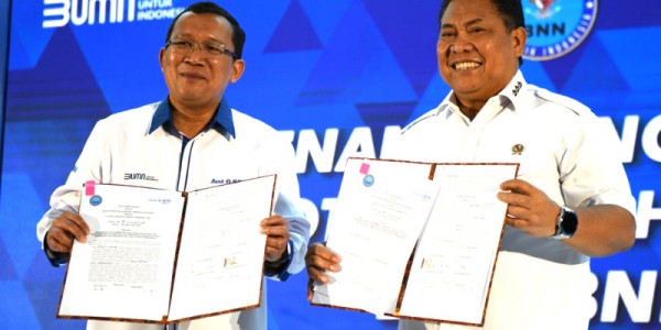 Telusur.co.id -Direktur Utama PT Bank Tabungan Negara (Persero) Tbk. Haru Koesmahargyo (kiri) bersama Kepala Badan Narkotika