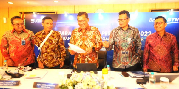 Telusur.co.id -Direktur Utama Bank BTN Haru Koesmahargyo berbincang bersama Wakil Direktur Utama Bank BTN Nixon LP