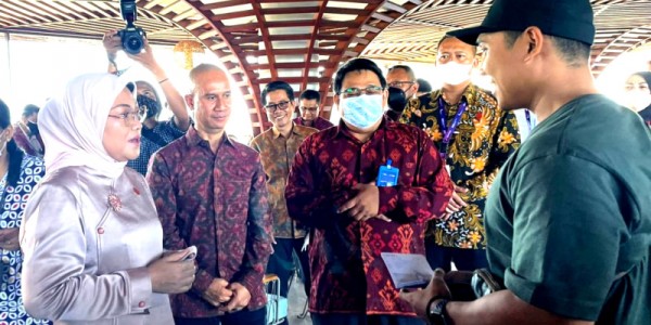 Telusur.co.id -Menteri Ketenagakerjaan Ida Fauzyah berbincang dengan penerima Bantuan Subsidi Upah (BSU) didampingi Branch Manager Bank