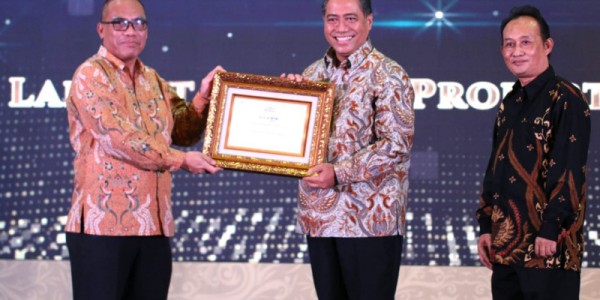 Telusur.co.id -Direktur Consumer PT Bank Tabungan Negara (Persero) Tbk. Hirwandi Gafar (tengah) tersenyum saat menerima penghargaan