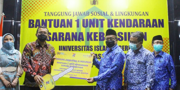 Telusur.co.id -Direktur Utama Bank BTN Haru Koesmahargyo Gdua kiri) secara simbolis menyerahkan kunci mobil sarana kebersihan