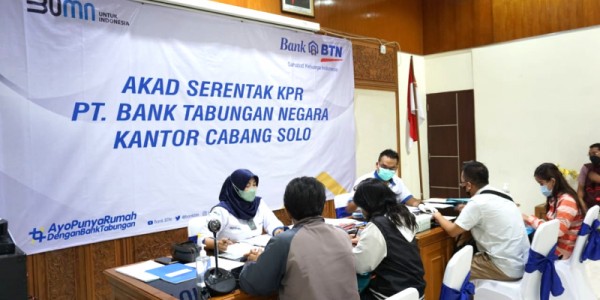 Telusur.co.id Kantor Cabang Bank BTN Solo saat malayani debitur yang mengikuti proses akad KPR serentak di