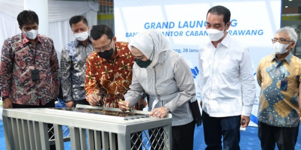 Telusur.co.id -Direktur Utama Bank BTN Haru Koesmahargyo dan Bupati Karawang Cellica Nurrachadiana(ketiga kanan) menandatangani prasasti peresmian