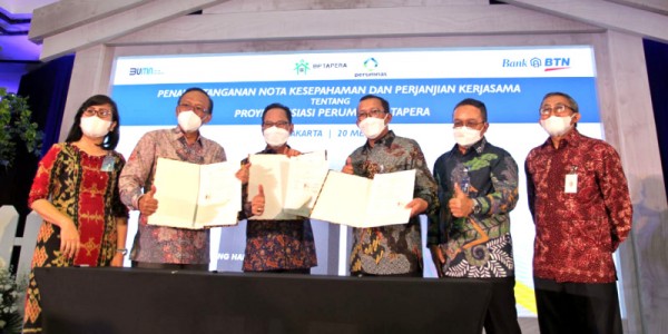 Telusur.co.id -Deputi Komisioner Bidang Pemanfaatan Dana Tapera Ariev Baginda Siregar (tiga kanan) dan Direktur Consumer And