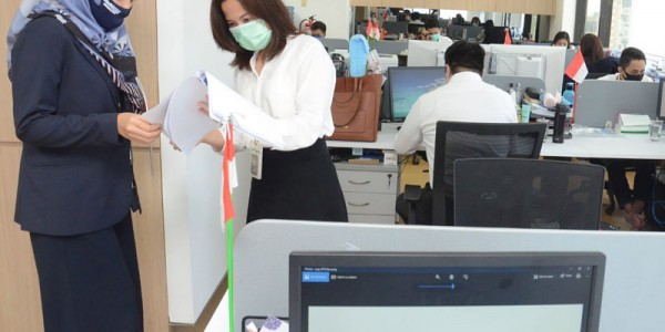 Telusur.co.id - Beberapa karyawan PT Bank Tabungan Negara (Persero) Tbk. melaksanakan tugas dengan tetap wajib memakai masker