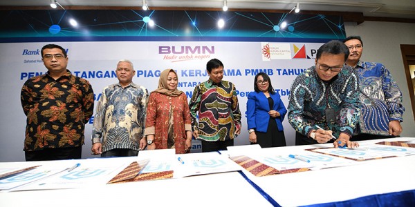 Telusur.co.id - Direktur Utama PT Bank Tabungan Negara (Persero) Tbk. Pahala N. Mansury (keempat kiri) bersama