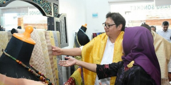 Airlangga memberikan apresiasi kepada para pelaku IKM nasional yang sudah bisa menembus pasar ekspor karena produk yang dihasilkannya beragam dan berkualitas. Contohnya IKM Dayang Songket yang rajin mempromosikan kain songket khas Sambas ke berbagai pameran di luar negeri seperti Malaysia, Brunei Darussalam, Jepang dan Belgia.