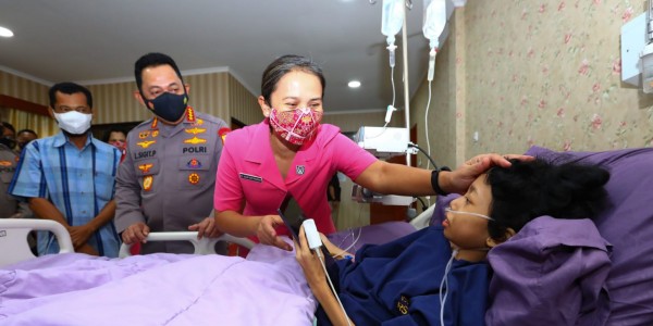 Sigit beserta istri sekaligus Ketua Umum Bhayangkari Juliati Sigit Prabowo, menjenguk Sinta Aulia untuk melihat kondisinya secara langsung saat menjalani perawatan di Rumah Sakit (RS) Polri, Kramat Jati, Jakarta Timur, Minggu (20/2/22).
