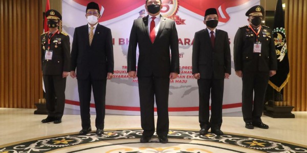 Telusur.co.id - Ketua MPR RI Bambang Soesatyo Bersama Menteri Kumham Yasona Laoly dan Danjen Kopassus Mayjen TNI