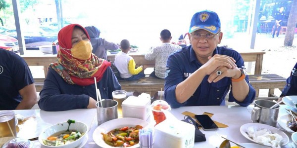 Telusur.co.id - Ketua MPR RI Bambang Soesatyo menikmati kuliner khas Purwakarta, Sate Maranggi Hj Yetty, yang